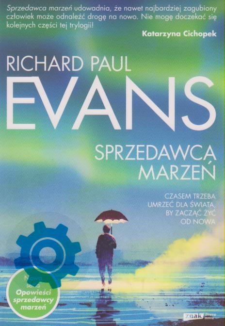 Czy ktoś, kto sprzedawał marzenia innym, będzie umiał odkupić własne? Z dzieciństwa Charles James pamiętał tylko agresję ojca, łzy matki i szukanie obiadu w śmietnikach. Jak każdy, kto jako dziecko dostał zbyt mało miłości, Charles pragnął, aby pokochał go cały świat. Gdy opuścił dom i zatrudnił się jako asystent znanego mistrza sprzedaży, chciał tylko pieniędzy, sławy i podziwu. Zdeterminowany, szybko piął się po szczeblach kariery, by wkrótce pokonać swojego mistrza i stanąć na szczycie. Wreszcie był szczęśliwy. Jednak czasem to, co bierzemy za szczęście, jest tylko jego iluzją. Nagle słynny sprzedawca marzeń zaczął doświadczać rzeczy, które zachwiały jego idealnym życiem. Najpierw pojawił się zły sen. Później ktoś przypomniał mu o krzywdach wyrządzonych innym. A później zdarzyło się jeszcze coś i Charles w jeden dzień stracił wszystko. Lecz tym razem los był dla niego mniej bezwzględny, niż on sam był dla innych. Dał mu drugą szansę. (Z okładki).